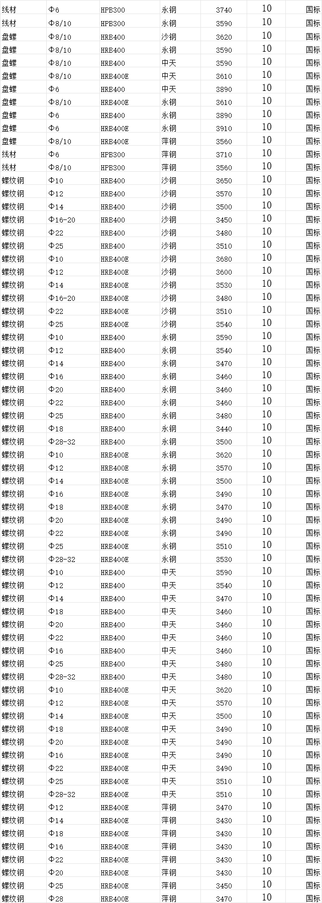 2025年10月6日(10.15)舟山錦海倉鋼材建筑材料價格