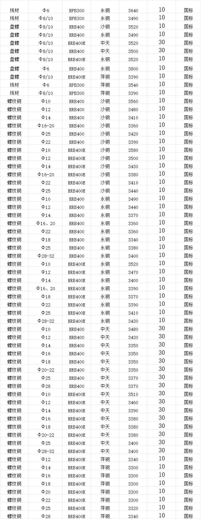 2025年10月6日(10.15)舟山聯(lián)士鋼材建筑材料現(xiàn)款價格